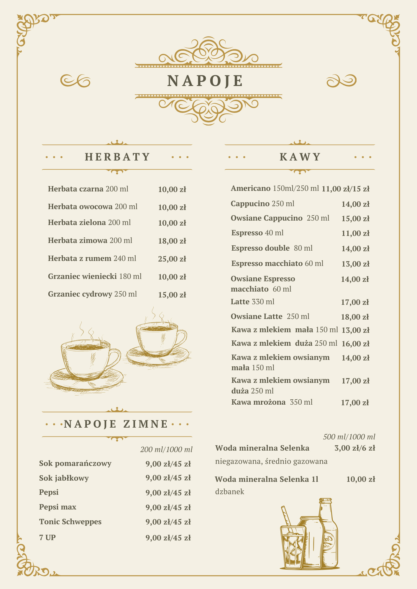 Ucztę dla podniebienia zakończyć można pyszną kawą z ciastem lub deserem lodowym.